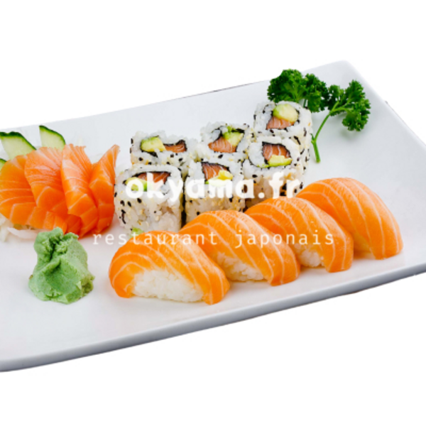 Assortiment de 10 sushi, 6 maki, 6 california, 6 neige roll, 6 roll au saumon cheese, assortiment de 20 sashimi,